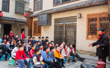 温暖的阳光照在青石砖和雕花木窗上,听闻这里有党史课堂,附近的居民和学生早早地搬好板凳,等待讲师的到来。2月23日下午,淮川街道城西社区党总支开展以“薪火相传学党史 我心向党跟党走”睦邻微课堂活动,由社区禁毒和维稳协会会长、82岁的老党员、退役军人袁效生担任宣讲员,为志愿者、青少年、居民群众讲党史。